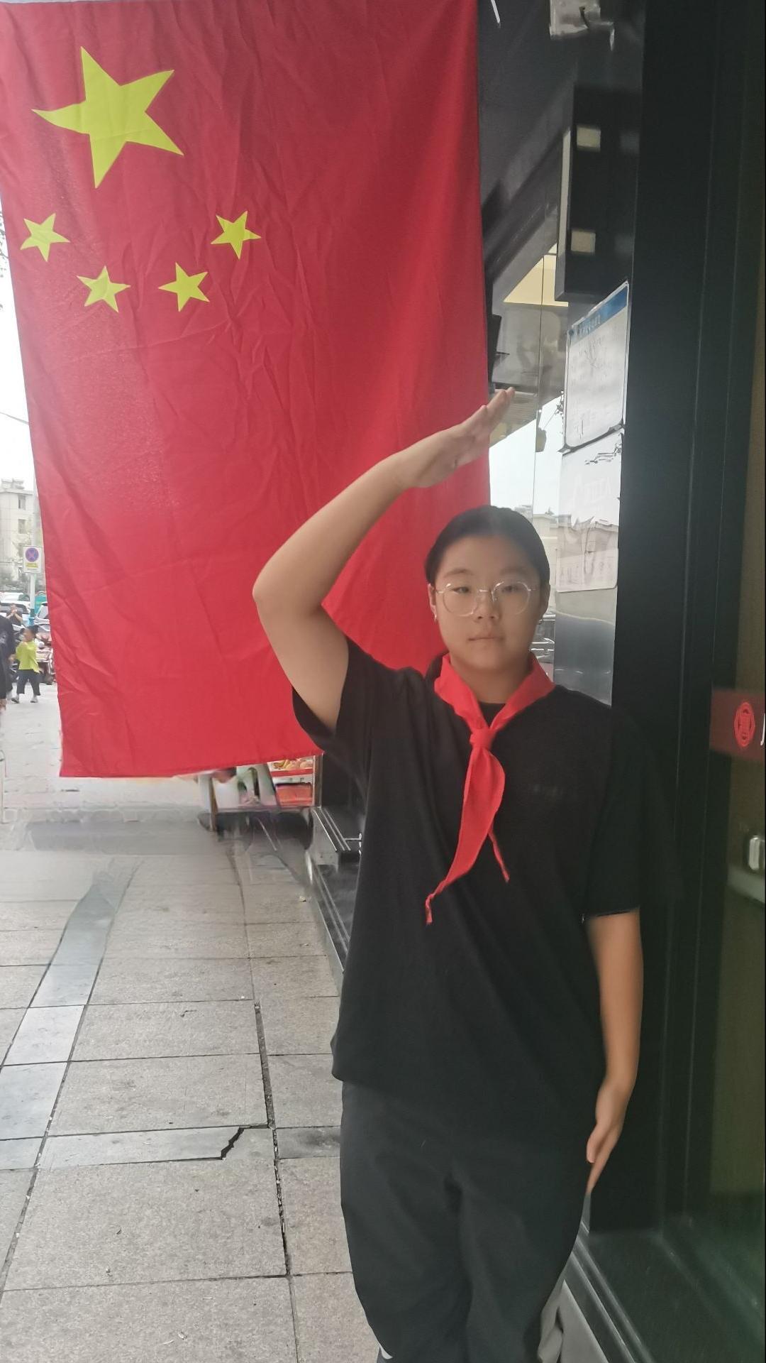 国庆期间,校园里、街道旁、景区中,处处可见同学们与国旗同框的身影。同学们挺直腰板,眼神坚定,在红色地标前留下青春足迹。一张张照片里,稚嫩的脸庞映着国旗的鲜红,眼神中满是对祖国的崇敬与热爱——这抹“中国红”,不仅飘扬在天地间,更镌刻在每一位学子的心中。
